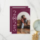 Stylish and modern graduation announcement card to send out to family and friends. There is a cranberry red arch frame around your photo. You can add a second picture on the back and the message is editable. The year is written on the side with an illustration of a graduation cap inside the number zero.