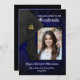 Traditional, formal design features charm on the dangling mortarboard tassel in luxurious gold metal. Stylish classic swirls in the background add the perfect touch of elegance. Super Easy to personalise with your name, address, school and other information. You can also customise the background colour by entering all your details, then clicking "customise it", then clicking "edit", and choosing a background colour. Be sure to customise the front and back backgrounds.