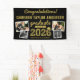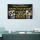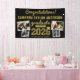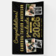 Gold Sketch Modern Typography On Black, Congratulations To Graduate Class of 2024/2025, Gold Mortarboard / Graduation Cap, Four Multi Photo Collage Graduation Party Banner.