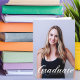 Graduate is written in elegant white flourish script over your senior portrait photo makes a beautiful, minimalist graduation announcement card. Customise with your name and high school or university class of 2025 under the cursive typography and add your personal details on the inside of these classy text overlay graduate cards. Add a 2nd photograph inside