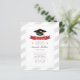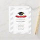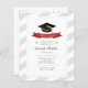 Modern graduation invitation card for high school or college graduates. Simple invitation featuring a graduate cap, banner and silver and white background. This invitation card is perfect for both male and female graduates and it's easy to customise by clicking the "Personalise" button above.