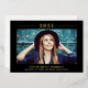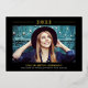 Two-sided black card design features a simple real gold foil high school graduation announcement on the front with an invitation to a graduation open house party on the back. Personalise the front with a landscape format senior photo and customise the modern white text with the class year, graduate's name, and school they are graduating from. Include all of the important party details on the back. Minimalist style design features an accent stripe on the front.