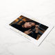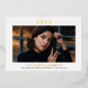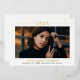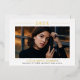 Two-sided card design features a simple real gold foil high school graduation announcement on the front with an invitation to a graduation open house party on the back. Personalise the front with a landscape format senior photo and customise the modern black text with the class year, graduate's name, and school they are graduating from. Include all of the important party details on the back. Minimalist style design features an accent stripe on the front.
