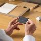 I like the square business card and personalization options. My only complaints is the white writing appears a little yellow, but that could just be an artist being nit-picky. Good, except for the white writing appearing yellow