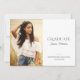 This minimalist graduation announcement features simple typography and a black and white colour palette. On the front, a vertical photo is displayed on the left side. To the right, "Graduate" is written in modern all caps typography, with the grad's name written in calligraphy below. At the bottom, add the graduate's school and graduation year. On the back, there is a template for graduation party details.
