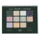 2025 Nature Calendar featuring designs by Susan Adey from CreekStreet Studio. Each month's illustration depicts different botanical pattern that aligns with the month of the year. This version has a dark green cover with a pattern of bright floral sprays.