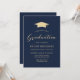 2025 Navy Blue Gold Cap Modern Graduation Party Invitation