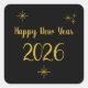 2025 New Year Elegant Gold Snowflakes Black Square Sticker