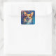 Square Stickers with Rainbow Color Fireworks and Playful Corgi
