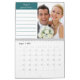 This Photo Calendar has a stylish and modern cover with a collage of your favorite photos. The template is set up for you to add 12 photos, the year and your custom text to the front and back cover. Each month shows a larger version of one of your photos from the front cover and also has a lined section for your special dates and highlights. The calendar has a color palette of teal green, pink sand and silver grey. Please browse our store for alternative styles.