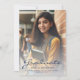 Modern graduation announcement featuring a custom vertical photo. The word "Graduate" appears in navy blue script, with the graduate's name, school and year of graduation below in sans serif font. Easily replace the sample image with your own graduate's photo. A white gradient screen helps ensure the text pops. Add details about your graduate's accomplishments and future plans on the reverse in gold-coloured text on a solid navy blue background. Ideal for high school or college graduation.