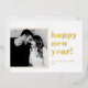 Happy New Year! Send holiday wishes to your loved ones with this customisable modern New Year flat card. It features bold typography. This gold foil New Year photo flat card is available in other colours and cardstock.