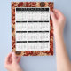 Plan your year with golden warmth and practical beauty. This 2025 flyer-style calendar features all twelve months in a clean grid layout, each framed by rich autumn florals in shades of orange, red, and beige. Bold white text on a black header adds contrast, while Sundays and holidays are marked in red for easy reference. Perfect for caregiving hubs, office walls, or cosy home spaces, this calendar blends seasonal charm with everyday clarity."