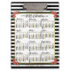 This 2025 year monthly calendar double-sided clipboard shows the days of the week for each month in classy, professional-looking black and gold. It's easy to read while also being trendy and cute. The design includes a black-and-white stripe background with flower embellishments in pink, red and yellow. There are hearts next to the cursive month names and a thin gold-coloured border. This is a pretty yearly calendar clipboard to help you conquer the new year. Always know what date it is and check the days of the week with this stylish calendar. The calendar appears on both sides for easy access. Use the templates to personalise the calendar with your name, business name, website or other information along the top and bottom (or simply delete the sample text to leave both spaces blank).
