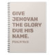 Start your year with inspiration using this 2025 Year Text notebook! Featuring the scripture from Psalm 96:8, “Give Jehovah the glory due his name,” this notebook is designed to motivate your personal study, note-taking, or journaling. The cover’s minimal design highlights the theme, making it a perfect companion for meetings, spiritual goals, and daily reflections. Keep track of your spiritual journey and let this notebook remind you to honor Jehovah every day.