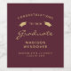Celebrate your graduate's milestone in style with these custom graduation wine bottle labels, featuring the words "Congratulations to our Graduate" in gold-coloured text on a burgundy background, decorated by a pair of gold mortar board caps. The word "Graduate" appears in a graceful handwriting-style script. Personalise it with the grad's name, school, and year of graduation.