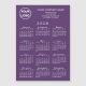 Send your customers a 2026 calendar magnetic card personalised with your logo, company name, and business contact information in white text on a purple background. Add your logo, company name, and custom text (website, phone number, address, slogan, or other message) in the sidebar. Your logo can be any shape. White or light coloured logos will work best for this design. Includes an envelope for easy sending (or get it without one in the sidebar).
