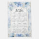 2026 Calendar Elegant Blue Floral Garden Tea Towel