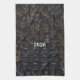2026 Calendar Elegant Gold Leaves Pattern Tea Towel