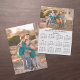 Wish friends and family a Happy New Year with a personalised holiday card featuring your photo and greeting over a 2026 calendar on the front and another photo on the back. Replace the sample photos and text in the sidebar. The custom text is in a cool black handwritten script font. Below it is an easy to read black calendar on a neutral grey background. You can remove the Zazzle logo on the back in the sidebar.