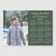 Send your wishes for a Happy New Year with a 2026 calendar magnet card personalised with your photo to the left of it, and your greeting and name above it. Replace the sample image and text in the sidebar. The custom text is in a cool white handwritten script font. Below it is a white 2026 calendar on a dark green background.