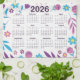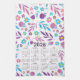 2026 Calendar Purple and Blue Floral Pattern Tea Towel