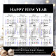 2026 Calendar Modern simple typography 'Happy New Year' Festive on Black Business Magnetic Card. All the texts are pre-arranged for you to personalise easily and quickly with your own details.