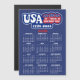 Calendar with America's 250th Birthday Celebration Design in Red, White and Blue. A very useful item for school or home office. This shows a full year view of all dates.