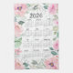 2026 Calendar Watercolor Blush Pink Floral Tea Towel