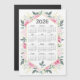 2026 Calendar Watercolor Pink Botanical Greenery