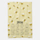 2026 Calendar Yellow Honey Bumble Bee Pattern Tea Towel