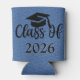 A Denim Colored Can Or Bottle Cooler For Cold Drinks For The Graduating Class Of 2026