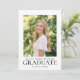 A classic graduation commencement invitation featuring a custom photo and traditional typography. This elegant design presents a formal, minimalist layout and timeless sense of style. Upload your own photo, and personalize the text with the graduate's name, parents' names, qualification title, educational institution, graduation year, and ceremony details. Printing colors: black and white, or customize the color to match your university, school, or college. Available as a printed card or a digital download. Explore the online collection for matching design templates!