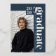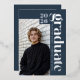 Make a bold, modern statement with this editorial-style photo graduation announcement featuring real silver foil typography and a muted navy blue palette. This customizable template allows you to personalize the final two digits of the class year, graduate’s name and school, and photo for a clean, magazine-inspired layout. Adjustable letter spacing lets you fully justify the name and school text for a tailored, high-end look. The year and graduate are printed in foil; the name and school are digitally printed in white text. Add an additional 3 photos and custom text on the back. Designed for seniors who want a timeless yet fashion-forward announcement with crisp accents and genuine silver foil detailing. © Kimbellished, LLC