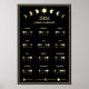 2026 Moon Phase Lunar Cycles Black and Gold Colour Minimalist Art Calendar Poster