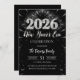 2026 New Year's Eve Party Black & Silver Glitter Invitation