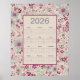 Pretty pink and gray floral pattern 2026 wall full-year calendar poster. Design by Jenn Steffen Art for Studio Posies.