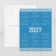 2027 Calendar, Greek Fret, Cosmic Latte on Blue Postcard