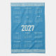 2027 Calendar, Greek Fret, Cosmic Latte on Blue Tea Towel