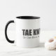 Classic black trimmed 6th Dan Tae Kwon Do cup features 6 yellow stripes and the the words, "TAE KWON DO 6th Dan Black Belt"