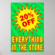 Advertise your storewide 20% off sale with this custom poster print. 20% OFF Everything In The Store.