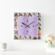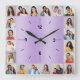 20 Photo Collage Brushed Metallic Purple Pastel Square Wall Clock