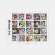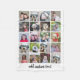 A design with a basic background. Use up to twenty square photos to create a unique and personal gift. a standard 4 x 5 grid with an area to add text. If you need to adjust the pictures, click on the customise tool to make changes.