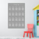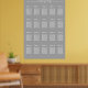 Up to 20 Table layout, laid out by table number, not names, with up to 12 people per table. A simple white text on grey (background is customisable) seating chart; click "customise it" to move columns, change fonts, colours, background colour or size of poster. Black text on coloured versions also available. Click and drag over tables, (starting from off the page) to move more than one table at a time.