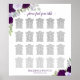 The beautiful 20 table floral boho chic seating chart is guaranteed to add an elegant touch to your wedding reception while making it easy for your guests to find their assigned tables. With enough space for 200 guests at 10 seats per table, this seating chart is both practical and stylish. Featuring a gorgeous rustic hand painted watercolor design, our seating chart boasts royal purple, lavender, and plum coloured roses, along with sprigs of garden greenery and eucalyptus leaves. The elegant script calligraphy title that reads "please find your table" adds a touch of sophistication to the design. Personalise your seating chart with the names of the couple and their wedding date displayed below the design.