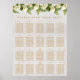 The wedding seating chart has 20 tables. On the upper border, there is a garland of white calla lilies and fern.