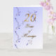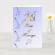 Gold typography surrounded buy Dark blue, purple buds on a light blue anniversary greeting card.