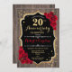 Rustic elegant design dark brown wood pattern, with faux glitter gold and red roses.