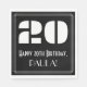 This vintage look 1920s/1930s appearance inspired birthday themed paper napkin design features a large art deco look inspired number "20", the message "Happy 20th Birthday,", an editable name, and a border pattern consisting of thin lines. Fun, personalised paper napkins like this might be used at a party being held to celebrate somebody’s twentieth birthday. [~Z0000494]