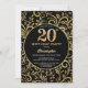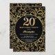 20th Birthday Black and Gold Floral Pattern Invitation